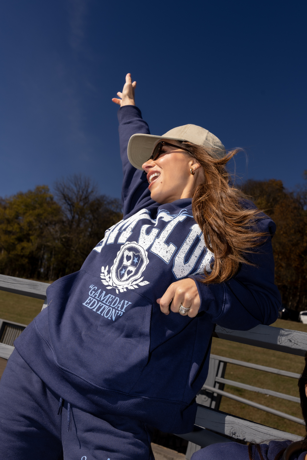 Athleisure, but make it mom-core. The Sporty Mom Club Sweatpants feature soft navy fleece that feels luxe and moves easy. With a relaxed silhouette, adjustable waistband, and elastic cuffs, they’re perfect for multitasking — from early drop-offs to late-night shows.
